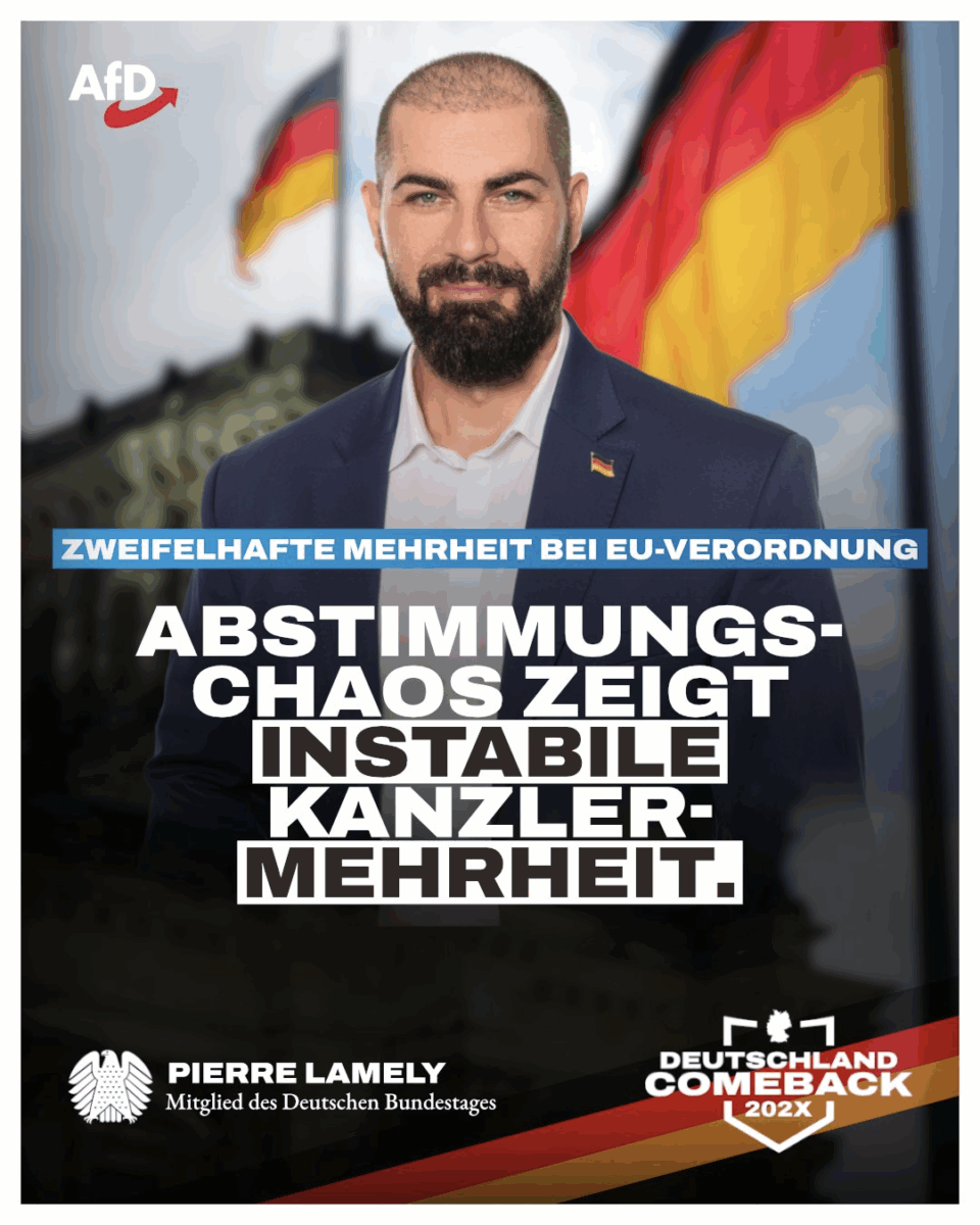CDU und SPD stimmten in Straßburg noch gegeneinander – gestern hätten sie in Berlin gemeinsam handeln müssen. Das Ergebnis: Ein knapper Abstimmungsausgang, eine peinliche Wiederholungsabstimmung durch Vizepräsident Ramelow – und am Ende das übliche Ausweichmanöver: Verweisung in den Ausschuss. Damit wurde bewiesen, was ich in meiner Rede angekündigt hatte – die Debatte wurde zum Belastungstest für die Bundesregierung.“