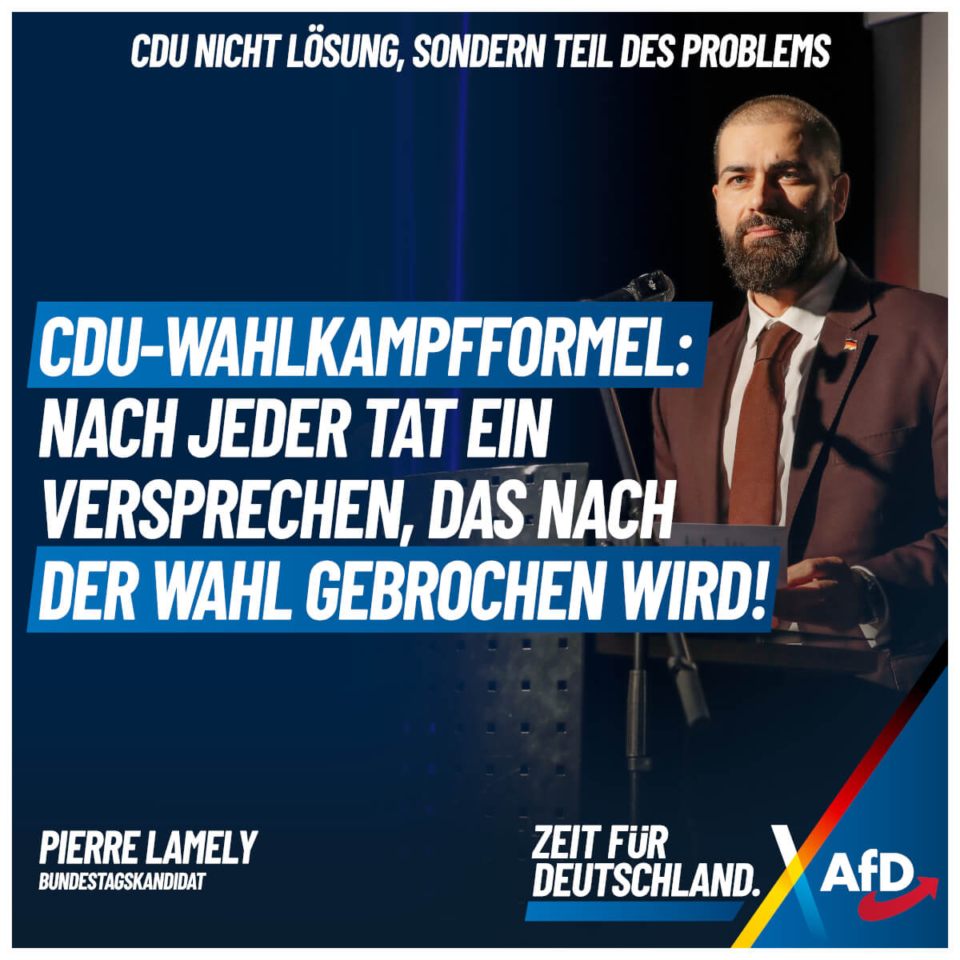Es ist ein abgekartetes Spiel. CDU wählen heißt am Ende eine Koalition mit den Grünen oder der SPD – oder schlimmstenfalls mit beiden! Und dann bleibt alles beim Alten: